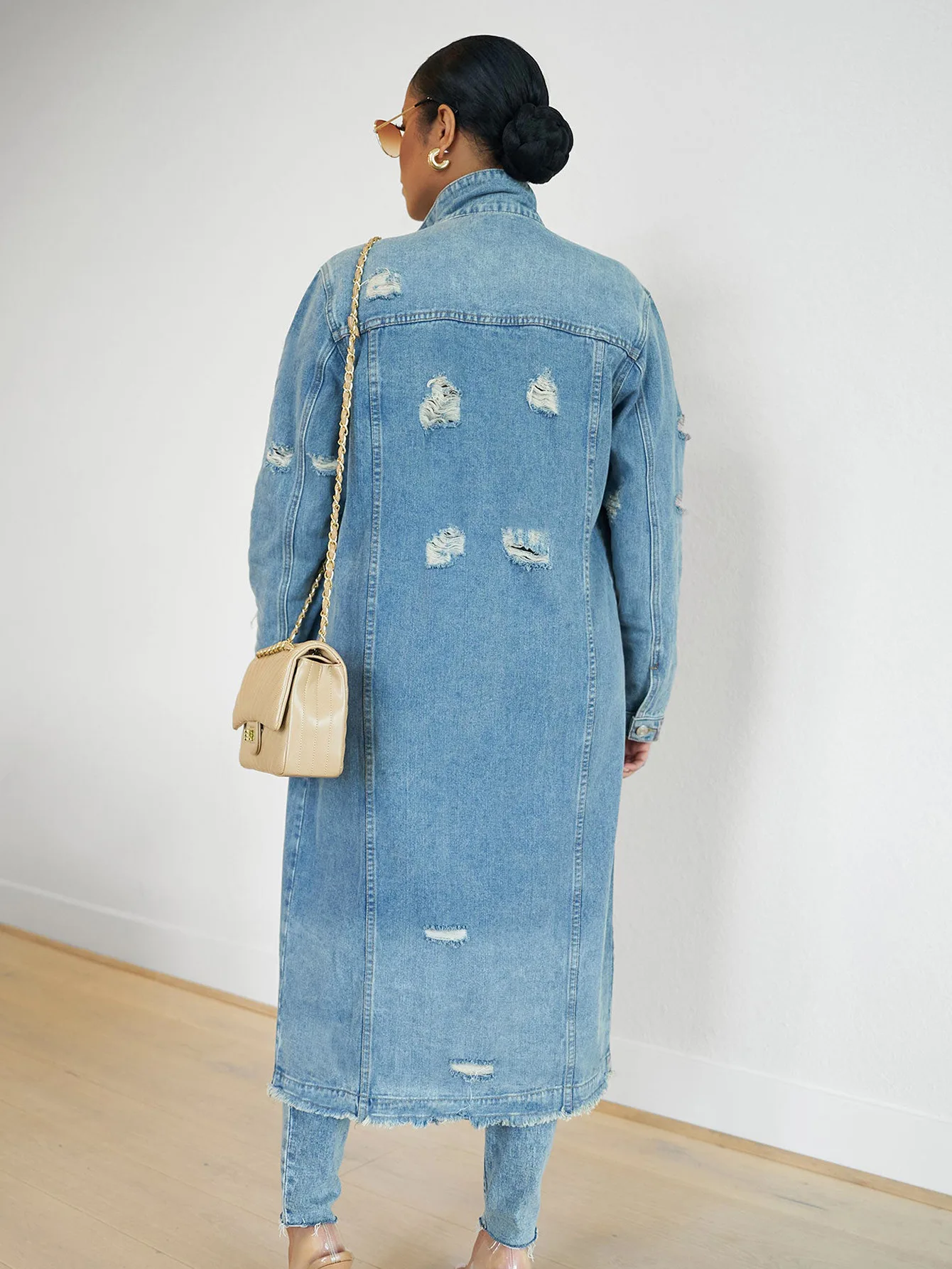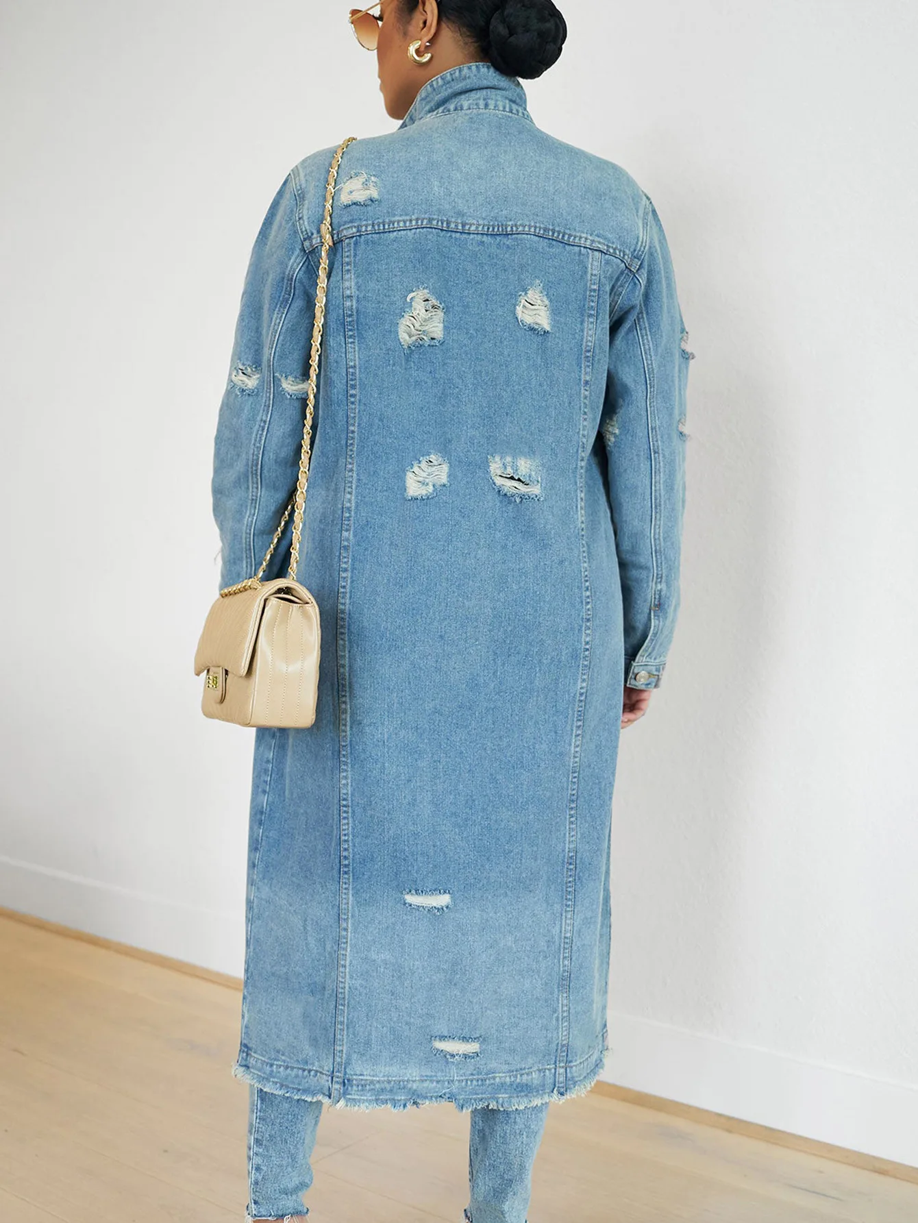 Elevate your casual wardrobe with this timeless denim jacket that effortlessly bridges the gap between laid-back and polished. Crafted in a rich solid color, it features a flattering V-neckline, functional button closures, and practical pockets for everyday convenience. The classic long sleeves and relaxed silhouette make it perfect for layering over your favorite pieces—whether you're heading to brunch, a night out, or weekend adventures. Versatile enough for dressing down jeans or dressing up a dress, this jacket is the wardrobe essential that works as hard as you do.